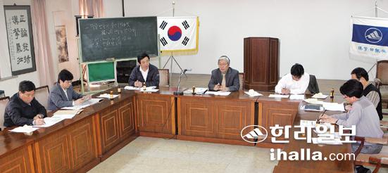 ▲특별자치마을만들기팀은 3월29일 오후 본사 회의실에서 각계 전문가 자문위원들이 참석한 가운데 1차 평가회 자리를 마련했다. /사진=강희만기자 hmkang@hallailbo.co.kr