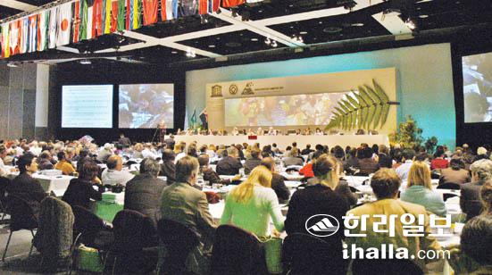 ▲제31차 세계유산위원회는 26일 회의를 속개, 위험에 처한 세계유산 등 인류환경에 대한 보전문제를 놓고 장시간 토론을 벌였다. 사진은 세계유산위원회 전체 회의 장면. /사진=뉴질랜드 크라이스트처치에서 강경민기자 gmkang@hallailbo.co.kr