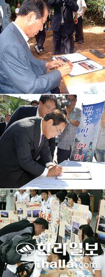 ▲제주섬이 세계자연유산으로 등재되기까지 김대중 전 대통령(맨위)을 비롯 정부관계자 뿐만 아니라 전국의 국민들이 서명운동에 스스로 동참해 IUCN측에 깊은 감명을 줬다. /사진=한라일보 DB