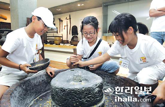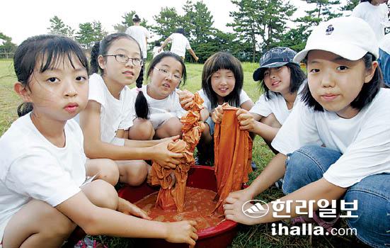 ▲자연생태문화체험장에서 황토염색하기. /사진=강경민기자 gmkang@hallailbo.co.kr