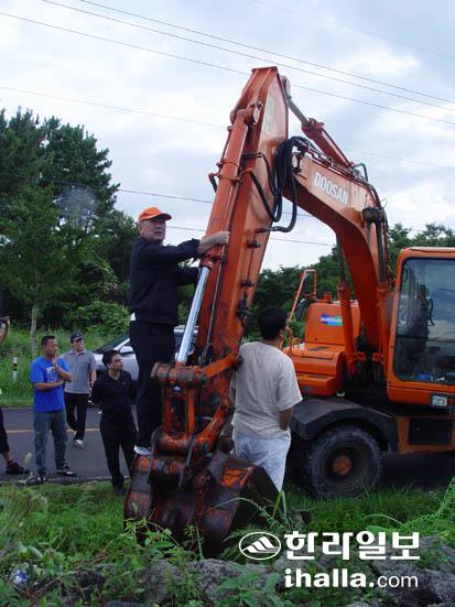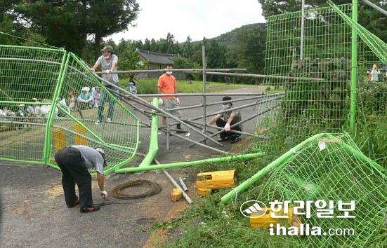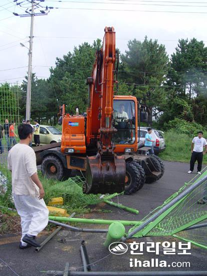 시몽스님측이 중장비를 동원해 관음사 철조망을 제거하고 있다.