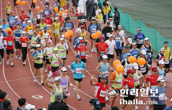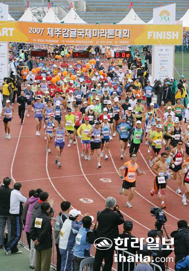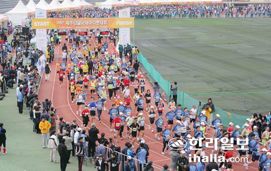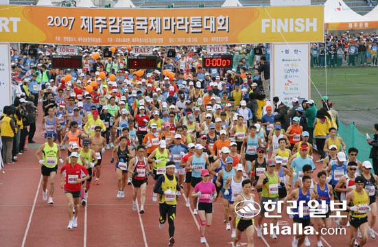 24일 오전 10시, 출발 신호와 함께 도내 달림이 3천8백여명을 비롯 타 지역에서 출사표를 던진 7백여명의 건각, 30여명의 외국인 등 4천5백여명의 달림이들이 힘찬 레이스를 내딛었다. /사진=강희만기자