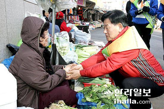 ▲양성언후보는 8일 제주시 동부권에 이어 9일에는 제주시내권을 중심으로 표밭 다지기에 나선 가운데 검증된 후보가 제주교육계의 수장이 돼야한다고 주장했다. /사진=강경민기자