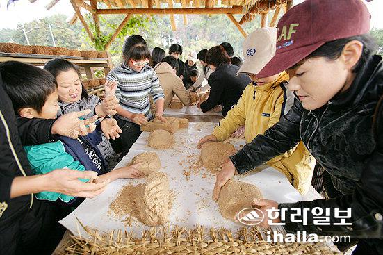 전통가마솥에서 삶아 다진 콩을 네모난 틀에 채워 예쁘게 빚느라 정신이 없기는 어린이나 학부모나 한 가지였다. 한해진씨(구좌읍 한동리)는 "어릴적 집에서 어머니, 할머니가 메주만들던 기억이 떠오르네요. 커다란 비닐포대에 삶은콩을 넣어 밟곤 했는데, 삶은 콩을 많이 먹으면 배가 아프다고 어머니가 말씀하시곤 했죠." 허지선(한동교 5) 어린이는 "오늘 메주를 만드는 체험이 특히 재미있었어요. 평소 좋아하는 된장찌개의 구수한 맛이 이렇게 만들어진다는 걸 알게 됐어요"라고 했다.