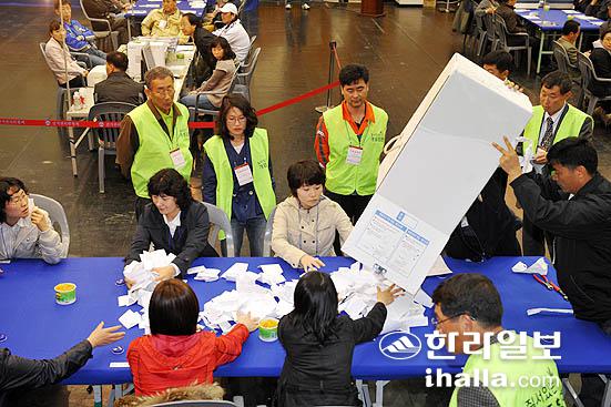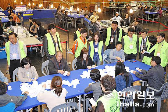 서귀포시선거구 제18대 국회의원선거 개표가 9일 오후 6시15분 부재자투표함 개함을 시작으로, 본격적인 개표에 돌입했다. /사진=강경민기자