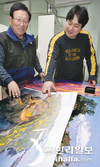 ▲김용구씨와 아들 동수씨가 현상소에서 인화된 사진을 보면서 의견을 나누고 있다. /사진=김명선기자 mskim@hallailbo.co.kr