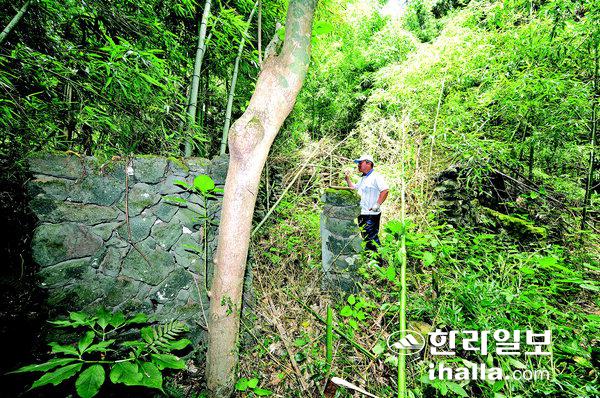 ▲집담만 간신히 버티고 있는 조천읍 와산리의 '잃어버린 마을'인 종남마을. 4·3때 불타버린 마을을 뒤로하고 떠났던 어느 집의 아낙이 대숲으로 둘러쳐진 돌담길을 훠이훠이 헤치고 돌아와 소설속 어머니처럼 도마칼을 벼를 지도 모를 일이다. /사진=이승철기자sclee@hallailbo.co.kr