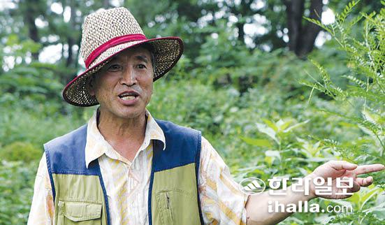 ▲초록 풀나무로 숲을 이룬 도심 '자연학습장'에서 만난 제주어보전회 허성수 회장. 그는 제주말로 부르던 풀꽃 이름이 가물가물해지듯 제주어도 급격한 변화의 물결에 휩쓸릴 것이라는 생각에 민간의 역할을 염두에 두고 제주어보전회를 꾸렸다. /사진=김명선기자