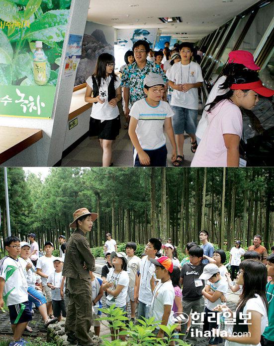 ▲'몽생이의 눈높이 여름 경제캠프'에 참가한 어린이들이 지난 7일 도개발공사의 삼다수 공장과 절물휴양림을 찾아 제주의 물과 나무에 대한 가치를 재발견 하는 시간을 가졌다. /사진=김명선기자
