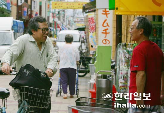그에겐 이쿠노쿠에서 만난 재일동포들의 삶이 중요한 문학 소재다. 조센이치바에 동행할 때도 제주출신 상인들이 운영하는 김치가게에서, 정육점에서, 커피숍 앞에서 인사를 나누기 바빴다.