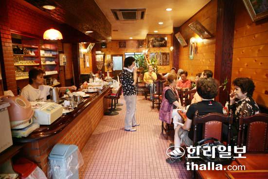 ▲4·3때 무장대 사령관이던 이덕구의 조카가 운영하는 다방 에덴. 이른 아침부터 제주출신 동포들이 자리를 차지하고 있다.
