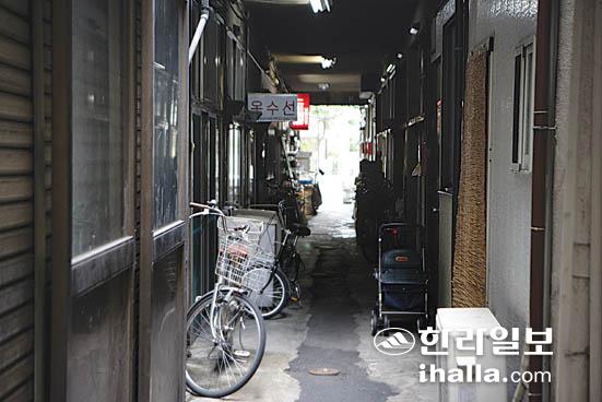 ▲재일동포 열명중 아홉명은 제주출신이 살고 있다는 도쿄 아라카와구, 불고기점, 김치가게 등으로 북적였던 곳이지만 지금은 하나들 문을 다는 가게가 늘고 있다.