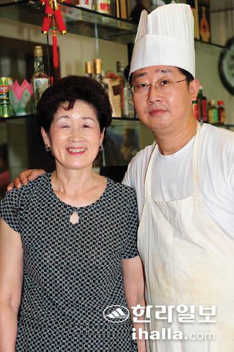 ▲4대째 가업을 잇고 있는 북경반점 양덕의씨(오른쪽)가 어머니 원극근씨와 다정하게 포즈를 취하고 있다. /사진=이승철기자 sclee@hallailbo.co.kr