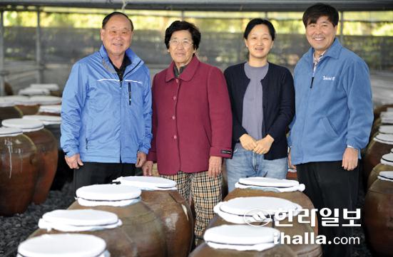 ▲서귀포시 중문동에서 장 제조업체인 '한라산 청정촌'을 운영하고 있는 양정옥·김성주씨 부부와 아들 부부인 김민수·박영희씨는 제주 토종 푸른콩으로 전통의 맛을 지켜가고 있다. /사진=강희만기자 hmkang@hallailbo.co.kr