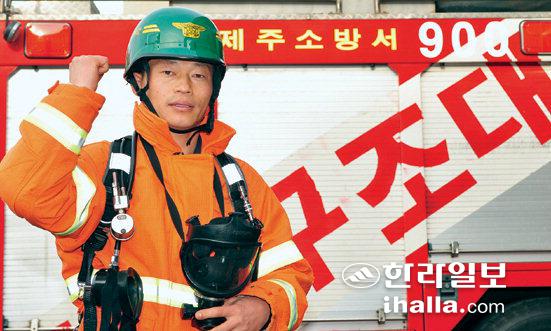 ▲'119의 맥가이버'로 통하는 장희철 119구조대 부대장이 힘차게 파이팅을 외치고 있다. /사진=이승철기자 sclee@hallailbo.co.kr