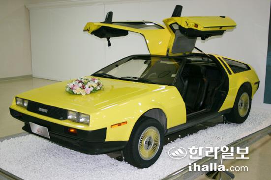 ▲영화 '백 튜더 퓨처'에서 타임머신으로 개조된 스포츠카로 등장했던 드로리안 DMC12.