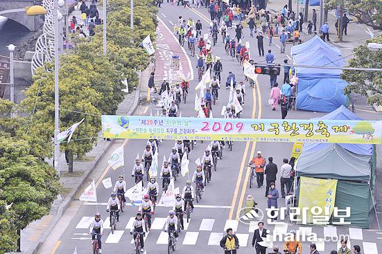 제39주년 지구의 날(4월22일)을 기념하기 위해 25일 제주시 산지천주변에서 '저탄소 녹색성장, 지구를 건강하게'라는 주제로 '20009지구환경축제'가 열렸다./사진= 강경민기자 gmkang@hallailbo.co.kr