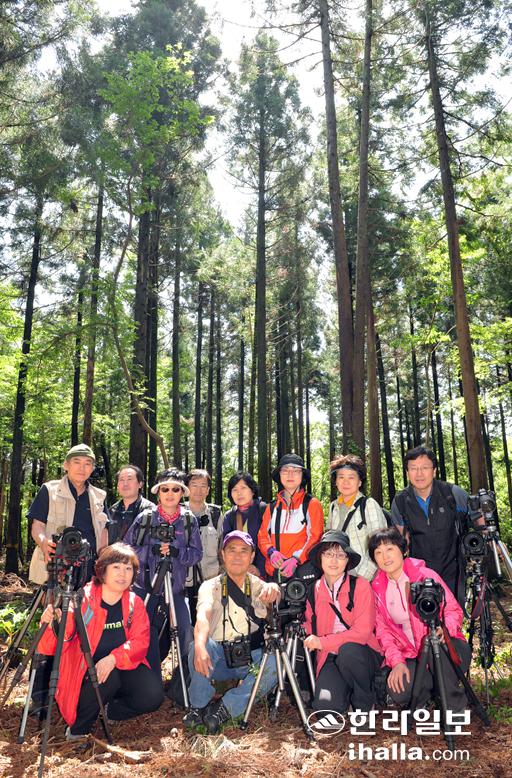 ▲서울에서 활동중인 더모멘트 디카동호회가 22일 아름다운 풍광을 카메라에 담기 위해 제주시 사려니숲길을 찾아 출사 전 기념촬영을 하고 있다. /사진=이승철기자
