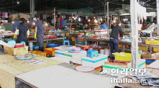 ▲서귀포시지역 6개 오일장 가운데 서귀포시향토오일시장과 대정오일시장을 제외하면 대부분 근근이 명맥만이 유지되고 있다. 1980년대 초반만 해도 점포들이 일주도로까지 늘어섰던 중문오일시장은 이제 상설점포수가 60여개에 불과한 초미니시장으로 전락해 주민과 관광객을 유인하기 위한 방안이 절실하다.