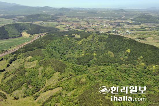▲'2009 거문오름국제트레킹대회'가 오는 18일 조천읍 선흘2리 현지에서 개막식을 시작으로 한 달간 개최된다. 사진은 항공촬영한 거문오름 전경. /사진=한라일보DB