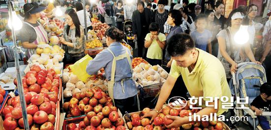 ▲한가위가 다가오면서 추석대목을 노리고 있지만 기업경기는 물론 재래시장도 대목이란 말이 무색할 정도로 호전기미를 보이지 않고 있다. /사진=강희만기자