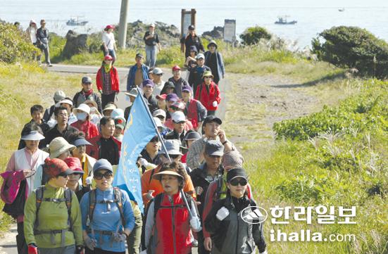 외돌개를 출발해 법환포구~월평포구까지 이어지는 제7코스, 일출봉이 아스라이 보이는 남원포구에서 시작해 우리나라의 아름다운 해안산책로로 꼽히는 큰엉 산책길을 지나 쇠소깍까지 이어지는 제5코스 등 제주올레는 14코스까지 개장했다. 코스마다 차이가 있지만 보통 15㎞ 안팎 구간으로 완주하는 데 약 5~6시간이 걸린다.