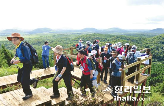 올해 여름 두번째로 열린 국제트레킹은 거문오름의 역사·문화·생태·지질 등 오름의 진가를 향유할 수 있는 코스로 선보였다. 특히 올해는 탐방객들을 위한 데크시설을 만들고 정상에서 주위 오름군과 분화구 내부를 조망할 수 있는 전망대도 설치했다. 이와 함께 거문오름의 아홉개 봉우리와 분화구 내 알오름의 형상이 '구룡농주형(九龍弄珠形)'이라는 스토리텔링이 가미되면서 탐방객들의 관심을 더욱 고조시켰다.