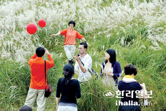 서 너 시간 이상이 걸리는 숲길걷기 체험이나 올레걷기 등이 부담스럽다면 가까운 오름 등 억새꽃이 만발한 곳으로 잠시 떠나는 것도 좋을 듯 싶다. 억새가 장관인 곳으로는 조천읍 교래리 산굼부리와 삼다수공장 앞에 펼쳐지는 광활한 억새밭, 남조로길 등으로 도심을 조금만 벗어나면 어디서든 억새를 만날 수 있다.