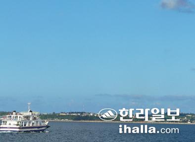 ▲이라부섬과 미야코섬을 잇는 다리가 완공되면 섬 주민을 태우고 바다위를 오가던 뱃길도 끊길 것이다.