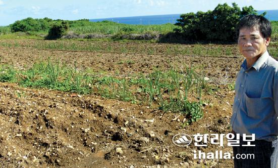 ▲530여년전 이라부섬을 찾은 제주도 표류인들이 머물렀을 것으로 추정되는 마을 주변은 밭으로 변해있었다. 택시 기사가 주변에 물어물어 겨우 마을터로 안내했다. /사진=진선희기자 jin@hallailbo.co.kr