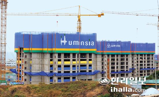 ▲2001년을 기준으로 3.3㎡당 350만원을 밑돌던 도내 아파트 분양가가 올해 사상 처음으로 700만원을 넘어서며 고공행진을 거듭하고 있다. 사진은 최근 아파트값 상승을 부추킨다는 논란을 일으키고 있는 '하귀 휴먼시아' 아파트 건설현장. /사진=이승철기자