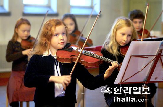 ▲핀란드 헬싱키 카퓰란 음악학교에서 악기를 배우는 아이들이 인근의 한 교회에서 작은 음악회를 열고 있다. /사진=진선희기자