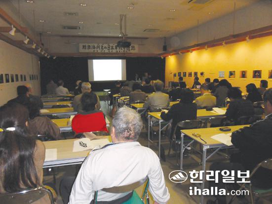 ▲지난 23일 하에바루문화센터에서 제주도 일본군 전쟁유적을 주제로 한 세미나가 열렸다.