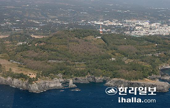 ▲그동안 특혜의혹을 받아온 삼매봉 근린공원 조성계획이 도시계획위원회를 통과한 이후 다시 논란이 증폭되고 있다. 사진은 하늘에서 바라본 삼매봉 전경. /사진=한라일보 DB