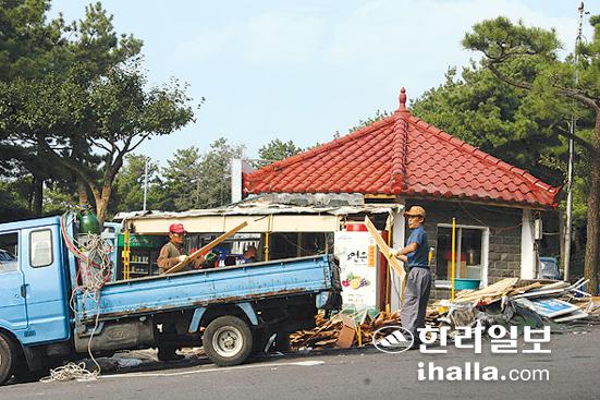 ▲지난해 10월 삼매봉공원내에 있는 불법건축물 철거 모습. /사진=한라일보 DB