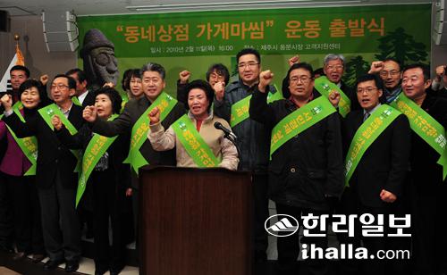 민주당 제주도당은 11일 제주시 동문시장 고객지원센터 회의실에서 고희범 제주도지사 예비후보, 오영훈·오정희 도의원, 당직자, 도내 경제관련 단체 관계자 등 30여명이 참석한 가운데 '동네상점 가게마씸 운동' 출발식을 개최했다.