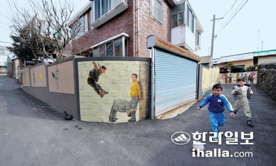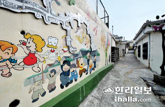 낙후된 동네에서 가 볼만한 곳으로 변신벽면 곳곳의 그림은 어린시절 추억 가득