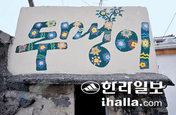 2008년부터 공공미술프로젝트로 추진된 제주시 일도2동 두맹이골목. 지난 해 말까지 1·2차에 걸쳐 두문1로부터 구중 1·2로를 거쳐 구중샛길까지 약 1km에 달하고 직접 걸어보면 20~30분 정도면 충분하다.