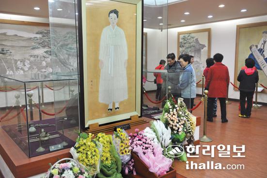만덕의 초상화 앞에는 여러 개의 조화가 놓여 있다. 몇년 전부터 인터넷에서 만덕의 일대기를 읽고 감명을 받았다는 경기도 성남의 한 여성은 매년 네차례나 꽃을 보내온다고 김씨는 전했다.