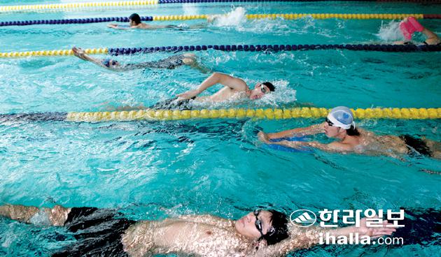 ▲수영은 폐활량을 증대시키는데 최적의 운동이고 물속에 있는 것만으로도 에너지가 소비되기 때문에 비만어린이나 천식환자들이 수영에 입문하는 사례가 많다. 또한 퇴행성관절염이나 골다공증 예방에 도움을 줘 치료목적의 스포츠로 애용되고 있다. /사진=한라일보 DB