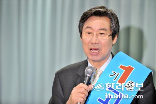 15일 제주도의회 도민의방에서 고계추 한나라당 제주도지사 예비후보는 우근민 민주당 제주도지사 예비후보를 상대로 공개질의 기자회견을 가졌다. /사진=강경민기자