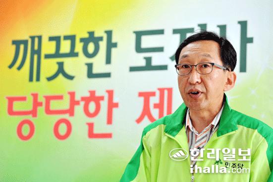 민주당 고희범 제주자치도지사 후보는 19일 오전 노형동 선거사무소에서 기자회견을 갖고 "서민 밀착형 진짜 경제를 일으키겠다"며 서민경제지원센터설치·고용지원금 제도도입 등 서민경제 10대 정책을 발표했다./사진=강경민기자