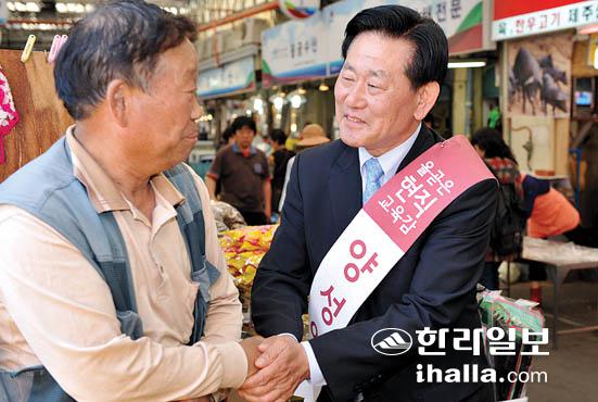 낮 12시를 즈음해 제주시로 돌아온 양 후보는 곧바로 제주시 농협 하나로마트를 방문했다. 양 후보는 하나로마트 관계자 및 장을 보러 나온 주부들과 일일이 악수를 나눴다. 또 오후 2시 무렵 제주시내 일도지구 상가 탐방에 이어 5시로 접어들면서는 제주시 중앙로 지하상가를 찾았다. 양 후보는 이 곳에서 상인 및 시민들에게 악수를 건네며 지지를 당부했다.