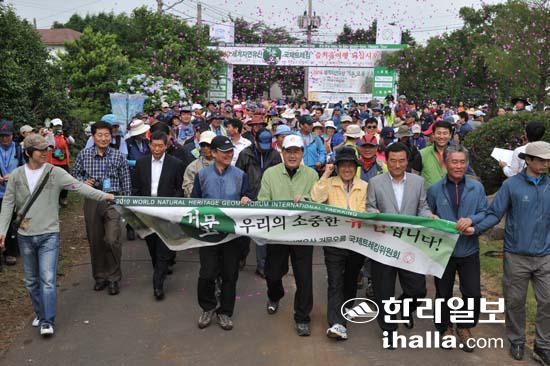 거문오름 국제트레킹위원회는 10일 오전 8시 30분 조천읍 선흘2리 거문오름 입구 특설무대에서 2010 세계자연유산 거문오름국제트레킹대회 개막식을 갖고 공식 일정을 시작했다.
