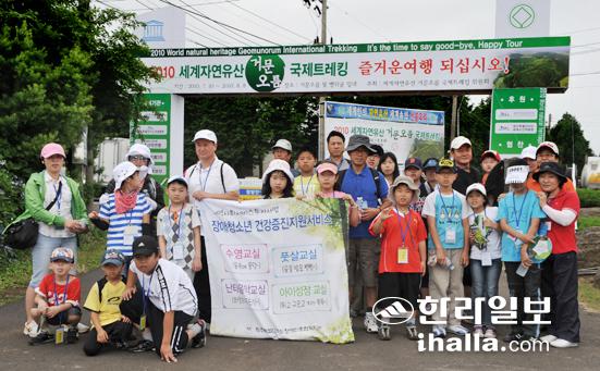 ▲제주특별자치도장애인종합복지관 소속 14가족이 10일 거문오름 개막식 현장을 찾았다. 이들은 이날 숲길을 걸으며 숲이 주는 활력을 통해 재활의지를 다졌다.
