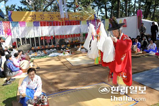 ▲지난 3월 제주시 사라봉 시민공원에 들어선 칠머리당에서 열린 영등송별제. 제주의 영등할망은 해산물의 씨를 뿌리는 신으로 그 역할이 분명한 편이다. /사진=강희만기자