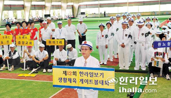 ▲제12회 한라일보기 생활체육게이트볼대회가 15일 제주종합경기장 전천후 게이트볼경기장에서 개막됐다. 이날 열린 예선전을 통해 구엄B팀 등 총 24개팀이 본선에 진출했다. /사진=이승철기자 sclee@hallailbo.co.kr