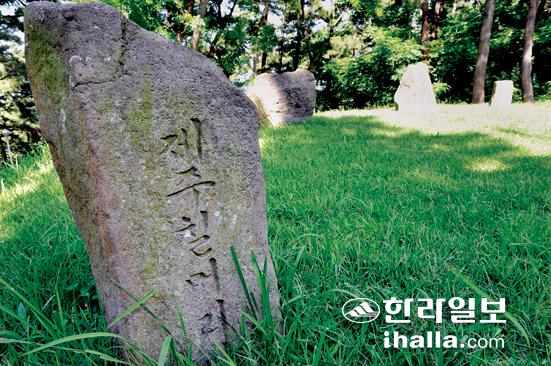 ▲제주시 사라봉 산책로로 옮긴 지금의 칠머리당. 굿이 행해지지 않을 땐 표지석만 덩그러니하다. /사진=강희만기자