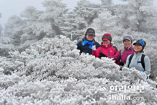 제주지역에 기습한파가 몰아친 가운데 26일 한라산 선작지왓일대에는 상고대가 만발해 산행에 나선 등산객들이 탄성을 자아내고 있다./사진= 강경민기자 gmkang@hallailbo.co.kr