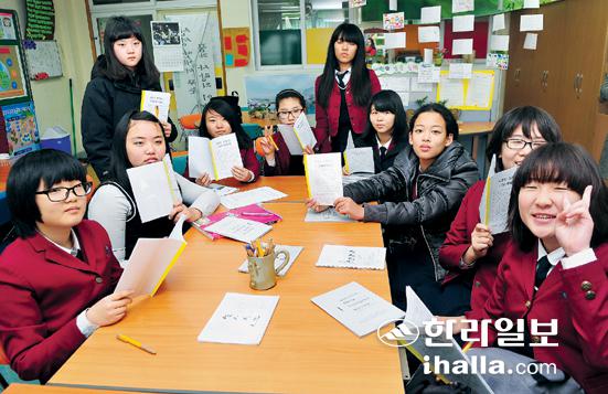 ▲신성여중 동아리 ‘샛별 아이다움’에서 활동하는 학생들이 저마다 사연이 담긴 책자를 들고 포즈를 취했다. 아이들의 자발적 활동으로 꾸려가는 '아이다움'동아리는 한권의 책을 만드는 일에 참여하고 있다. /사진=이승철기자